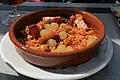 | Migas ("crumbs") | Castilla–La Mancha, Andalusia, Aragon, Murcia, Castile and León, Extremadura | bread dish | small toasted pieces of bread (crumbs) with olive oil, garlic and bacon, mainly. | |