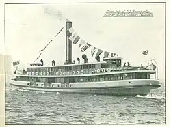 | Telephone | 1878 | Wooden paddle steamer. Built by H. Perdriau. 40-hp compound diagonal steam engine by Atlas Engineering Co. | 85 tons | 31.9 m | - | ||||