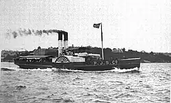 | Commodore | 1878 | Manly iron paddle steamer. Originally had twin funnels. Sold to Newcastle in 1926 for use as a tug. Scuttled 8 September 1931 | 187 tons | 1926 | More images...