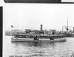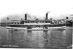 | Lily | 1882 | Wooden screw steamer. Built J. Piper, Balmain, NSW. 20 hp triple expansion steam engine. Spent much of her time on the Circular Quay to Neutral Bay run.[37] In 1894, collided with Manly ferry, Conqueror, smashing in 10 feet of her bow and partially sinking her. Conqueror suffered minor damage.[38] Broken up 1911 | 66 tons | 23.0 m | 250 | - | 1911 | More images...