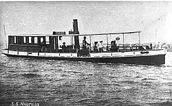 | Nautilus (II) | 1873 | Wooden screw steamer, built 1873 by W Dunn, Lavender Bay, for Parramatta River Steam Company. Ran a free service from along Tarban Creek to Hunters Hill wharf to meet river ferries.[26] Later North Shore Ferry Company, then Sydney Ferries Limited. 8 hp steam engine by Vale & Lacey. | 11 tons | 14.0 m | 75 | 1919, broken up | More images...
