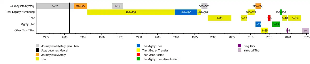 - Thor vol. 1 #600–621 (February 2009 – March 2011) and Thor vol. 1 #620.1 (March 2011)
