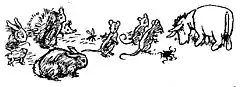 Eeyore with Rabbit's friends and relations from Chapter VIII of Winnie-the-Pooh