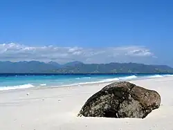Indonesia is located in a region of abundant coral reefs known as the Coral Triangle[3] as well as being the country with the most volcanoes in the world.[4] Some beaches are derived from fluvial sands and gravels, others from cliff erosion. Coral reefs form white or yellow sanded beaches, while beach sediments derived from volcanic rocks are typically black or grey, such as those of northern Bali and southern Java. In the granitic zone of the Riau, Bangka and Belitung Islands, white quartz sands as well as granite boulders dominate. Sandy backshores are colonized by coastal vegetation, notably Ipomoea pes-caprae and Spinifex littoreus, then coconut and casuarina trees. Coastal dunes are poorly developed in the humid tropics, but on the southern shores of Java and Sumatra, prograded beaches are backed by dunes, some of which carry woodland vegetation. Large deposits of lava and ash from volcanic eruptions may transport large quantities of pyroclastic sediment down to the coast, such as at Mount Merapi in southern Java and Mount Agung in Bali.[2] The area within the Coral Triangle is associated with rich marine biodiversity.[5] Beaches in the area, such as those that are important turtle nesting beaches, are protected by the government.[6]