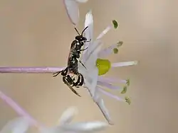 Hylaeus longimaculus, copulation - Hylaeus dinkleri (Friese, 1898)