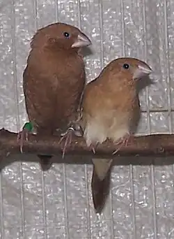 The estrildid finches are small passerine birds of the Old World tropics and Australasia. They are gregarious and often colonial seed eaters with short thick but pointed bills. They are all similar in structure and habits, but have wide variation in plumage colours and patterns.