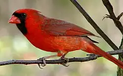 The cardinals are a family of robust seed-eating birds with strong bills. They are typically associated with open woodland. The sexes usually have distinct plumages. Eleven species have been recorded in Indiana.