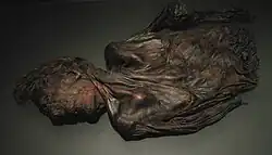 Only the severed head of the body was found. The young man was around 20 years old at the time he died. The find was originally titled as "Roum Woman" until traces of beard stubble were found on the face.[32] The sheepskin that the head was wrapped in dates to the early Iron Age.[5] |
