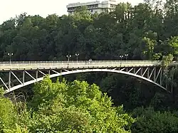 - ^ The initial covered bridge of Lovech, built between 1874 and 1876 had a length of 84 m (276 ft), 6 vents and accommodated 64 shops. It was, however, wholly destroyed by fire in 1925.[8] A more modern bridge was constructed at its place in 1931 only to be replaced by a reconstruction of Kolyu Ficheto's design in 1981–82. The current bridge is 106 m (348 ft) long and has 14 shops, the architect being Zlatev.[9]