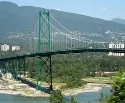 {{cite book}}:|website=ignored (help) - ^ "A Brief History". Lionsgatebridge.gov.bc.ca - Lions Gate Project. Archived from the original on 15 August 2000.