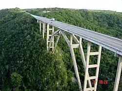 1 | Bacunayagua Bridge | 114 m (374 ft) | 313 m (1,027 ft) | Arch Concrete deck arch |