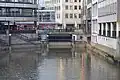 Bridges across harbor basins and canals in Harburg; the port of Harburg is indirectly fed through the Seeve.
