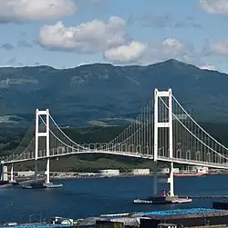11 | Hakuchō Bridge | 白鳥大橋 | 720 m (2,360 ft) | 1,540 m (5,050 ft) | Suspension Steel box girder deck, steel pylons 80+330+720+330+80 |