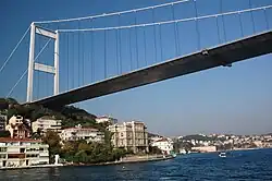 5 | Bosphorus Bridge | Boğaziçi Köprüsü | 1,074 m (3,524 ft) | 1,560 m (5,120 ft) | Suspension Steel box girder deck, steel pylons |