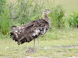 Bustards are birds in the family Otididae in the monotypic order Otidiformes. There are currently 26 extant species of bustards recognised by the International Ornithologists' Union.[1] Many species of fossil bustards are known from the Miocene onwards; however, their exact number and taxonomy are unsettled due to ongoing discoveries.[2]