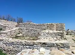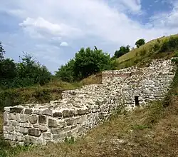 Castra Martis is a Roman fortress (castra) in the Roman province of Dacia Ripensis on the modern town of Kula, in Vidin Province. Castra Martis has the best preserved Roman walls in Bulgaria and one of the best preserved in Europe. The height reaches 17 m. It used to protect the road through Vrashka Chuka pass in the western Balkan mountains. In 408, the Huns under Uldin took control of the site during an attack on the Eastern Roman Empire, apparently by treachery. | ![]() | |