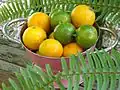 × Citrofortunella mitis | Calamansi, also known as calamondin, Philippine lime, or Philippine lemon, is an economically important citrus hybrid predominantly cultivated in the Philippines. It is native to the Philippines, Borneo, Sumatra, and Sulawesi in Indonesia in Southeast Asia, Malaysia as well as southern China and Taiwan in East Asia. |