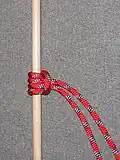 Clove hitch: The Clove hitch is used in belay systems among other things. |