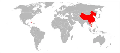 A communist state is a form of government that combines the state leadership of a communist party through the supreme state organ of power, Marxist–Leninist political philosophy, and an official commitment to the construction of a communist society. Communism in its modern form grew out of the socialist movement in 19th-century Europe and blamed capitalism for societal miseries. In the 20th century, several communist states were established, first in Russia with the Russian Revolution of 1917 and then in portions of Eastern Europe, Asia, and a few other regions after World War II. The institutions of these states were heavily influenced by the writings of Karl Marx, Friedrich Engels, Vladimir Lenin, Joseph Stalin and others. However, the political reforms of Soviet leader Mikhail Gorbachev known as Perestroika and socio-economic difficulties produced the revolutions of 1989, which brought down all the communist states of the Eastern Bloc bar the Soviet Union. The repercussions of the collapse of these states contributed to political transformations in the Soviet Union and Yugoslavia and several other non-European communist states. Presently, there are five communist states in the world: China, Cuba, Laos, North Korea, and Vietnam.