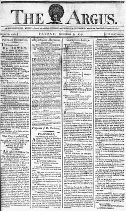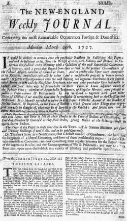 - ^ Brigham, Clarence S. (April 1915). "Bibliography of American newspapers, 1690–1820: part 3: Maryland to Massachusetts (Boston)". Proceedings of the American Antiquarian Society. 25 (1): 128–293. Retrieved 2010-10-21.