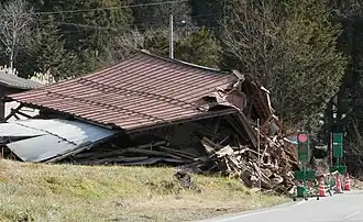 A magnitude 6.3 earthquake struck Japan 15 km (9.3 mi) north northeast of Kunisaki on March 13 at a depth of 79.0 km (49.1 mi).[30] 21 people were injured and many houses were severely damaged from Oita Prefecture to Hiroshima.