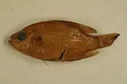 Found in the table below are fish found in Missouri separated by the Family that they are in. The list is not complete as there are over 200 species of fish found in Missouri.[1][2]
