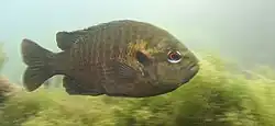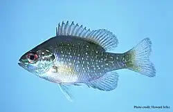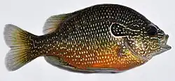 | Longear sunfish | Lepomis megalotis | Slow pools in moderate flowing small to large streams with rocky bottoms, lakes | ||