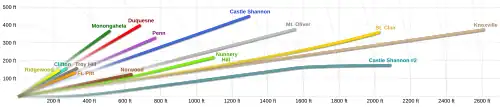 | Castle Shannon Incline No. 2 | 1892 | 1914 | Mount Washington: Warrington Avenue west of Haberman Avenue | Mount Washington: Bailey Avenue west of Haberman Avenue | Pittsburgh Railways (Pittsburgh and Castle Shannon Railroad) | |