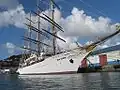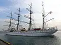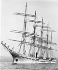 1953 | S | Echevarrieta & Larriñaga, Cadiz | 371 ft (113 m) | 43.3 ft (13.2 m)[19] | 4-mast barquentine | Steel | 26,555 sq ft (2,467.0 m2)[20] | 3,754[21] | training ship | |