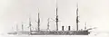 1867 | H | Thames Ironworks and Shipbuilding Company | 407 ft (124 m) | 59 ft 6 in (18.1 m) | 5-mast | 32,377 sq ft (3,007.9 m2) | 6,643 tons burthen | 10,690 tons | warship | |