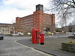 | Some of these mills are occupied by Swizzels Matlow.[11] One mill was built about 1843, and part was destroyed by fire in 1983. Swizzels Matlow's address is Albion Road. | |||||