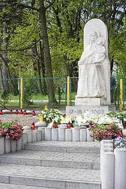 - Erected in 2003, the monument commemorating the visit of a copy of the Black Madonna of Częstochowa icon was designed and crafted by Bogdan Biernat from Krosno.[10]