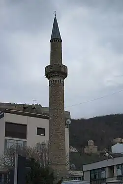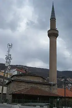 | 9 | Mosque of Arasta or Mosque of Evrono | This mosque was built between the years 1526 and 1538 by Evrenos - Zade Jakup Bey. To this day only the minaret stands since in the year of 1911 the government of the time made the demolition of the mosque and the whole market.[2][3][6][7][14] | 42°12′37″N 20°44′31″E / 42.210308°N 20.74182°E | |