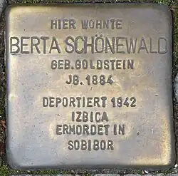 - ^ "Lutherstadt Wittenberg - Stolpersteine". Archived from the original on 2015-12-22. Retrieved 2013-04-30.