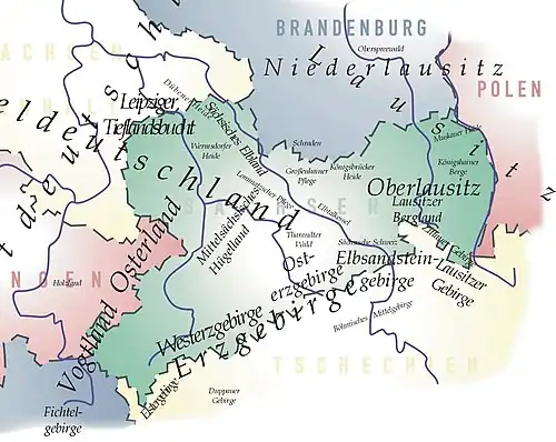 Map of several important regions of Saxony and its neighbouring states and countries