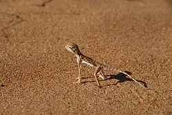 Qatar is a nation situated eastwards of the Arabian Peninsula of which it is considered a part of. Upwards of 30 reptile species[1] have been recorded as living in the country. Most of the country is arid, with a presence of dunes in the far south, close to neighbouring Saudi Arabia.[2]