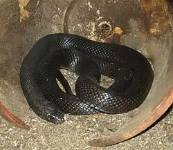 Desert black snake  Executed[26] Walterinnesia morgani 60 cm (24 in) Least concern Decrease Exclusively nocturnal, this species inhabits east Arabia. It prefers vegetated sandy habitats