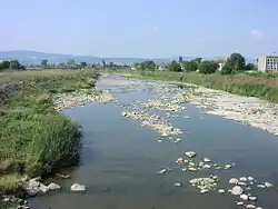 The Aegean Sea catchment basin drains the Thracian Plain and most of the higher lands to the south and southwest. Several major rivers flow directly to the Aegean Sea. Many of their tributaries fall swiftly from the mountains and have cut deep, scenic gorges. The 480 km–long Maritsa (of them 321 km in Bulgaria) and its tributaries drain all of the western Thracian Plain, most of Sredna Gora, the southern slopes of the Balkan Mountains, and the northern slopes of the eastern Rhodopes. After it leaves Bulgaria, the Maritsa forms most of the Greco-Turkish border.[4] Maritsa's major tributaries are the Tundzha, Arda, Topolnitsa, Vacha, Stryama, etc. The other Bulgarian rivers flowing directly to the Aegean are the Struma and the Mesta.[3][4]