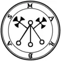 - ^ a b c d e f g h i j k l m n o p q r s t u v w x y z aa ab ac ad ae af ag ah ai aj ak al am an ao ap aq ar as at au av aw ax ay az ba bb bc bd be bf bg bh bi bj bk bl bm bn bo bp bq br bs bt Crowley, Aleister; Mathers, Samuel Liddell MacGregor (1995), The Goetia: the lesser key of Solomon the King : Lemegeton--Clavicula Salomonis Regis, book one (2 ed.), Red Wheel, ISBN 978-0-87728-847-3