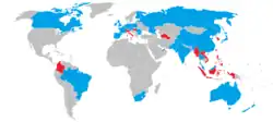 Red-filled: nations that have hosted a pro–am tournament but are yet to host a fully professional tournament.