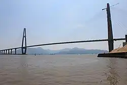 | 11 | Qingshan Yangtze River Bridge | 283.5 metres (930 ft)[5] | 938 metres (3,077 ft) | Cable-stayed | 2021 | Wuhan, Hubei 30°40′47.8″N 114°28′00.4″E / 30.679944°N 114.466778°E |