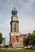 132 m (433 ft) | 4 | Yes | 1911 | Tower building | Religious | Hamburg | Largest clock faces in Germany at 8 m (26 ft) | [20] | |