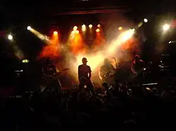 Thrash metal was an inspiration for later extreme genres such as death metal and black metal . This list also includes certain bands which belong to the first wave of black metal. These bands essentially played thrash metal with a heavy emphasis on Satanic and occult themes in the lyrics and imagery.[ 12] Over the years, thrash metal has developed a few subgenres of its own, such as crossover thrash and groove metal .[ 13]
