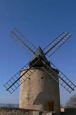 - ^ This windmill is of a location named after a watermill being the heart of a large property (usually called "Le moulin des Roberts" because it used to belong to the Robert family). According to the "Archives départementales de Vaucluse", these two mills were in the 18th and 19th century the biggest for production in the Gordes area.