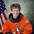 First female shuttle pilot and shuttle commander. | STS-63 (Feb. 3, 1995) STS-84 (May 15, 1997) STS-93 (Jul. 23, 1999) STS-114 (Jul. 26, 2005) | |