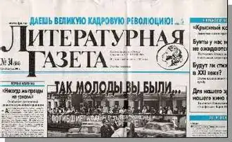 Literaturnaya Gazeta (Russian: Литературная Газета, Literary Gazette) is a weekly cultural and political newspaper published in Russia and the Soviet Union. It was published for two periods in the 19th century, and was revived in 1929.[1]