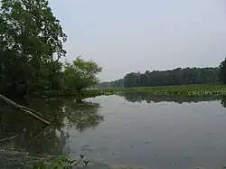 Little Hunting Creek is a 3.6-mile-long (5.8 km)[1] primarily tidal tributary of the Potomac River located in Fairfax County, Virginia, not to be confused with Hunting Creek farther north. A stone-arch bridge, completed in 1931,[2] carries traffic on the George Washington Memorial Parkway across the narrow mouth of the creek, located 96.6 miles (155.5 km) upriver from the mouth of the Potomac.[3] The Washington family built its Mount Vernon plantation on the Potomac River along both banks of Little Hunting Creek during colonial times.[4][5] The creek is bordered by residential communities in addition to the Mount Vernon property. It is a popular location for recreational fishing, and much of the wildlife characteristic of the tidal Potomac wetlands can be spotted there.