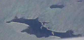 Little Swan Island lies behind Swan Island in this aerial photo. | |