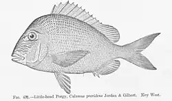 The Littlehead porgy was first formally described in 1884 by the Ichthyologists David Starr Jordan and Charles Henry Gilbert with its type locality given as Key West in Florida.[4] The genus Calamus is placed in the family Sparidae within the order Spariformes by the 5th edition of Fishes of the World.[5] Some authorities classify this genus in the subfamily Sparinae,[6] but the 5th edition of Fishes of the World does not recognise subfamilies within the Sparidae.[5]