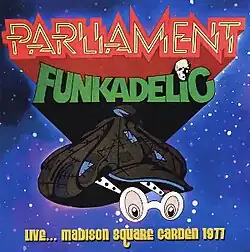 Live...Madison Square Garden 1977 is a live album by the American funk band Parliament-Funkadelic. The album was released on CD and vinyl in the UK in November 2017 by the RoxVox label. The CD incorrectly states that it features a live performance from the band at Madison Square Garden in 1977, when in actuality, the recording features the rehearsals for the Mothership Connection tour, done on September 26, 1976, at Stewart International Airport in Newburgh, New York. The liner notes feature a transcription of a December 1977 article about Parliament-Funkadelic from Circus (magazine) magazine.